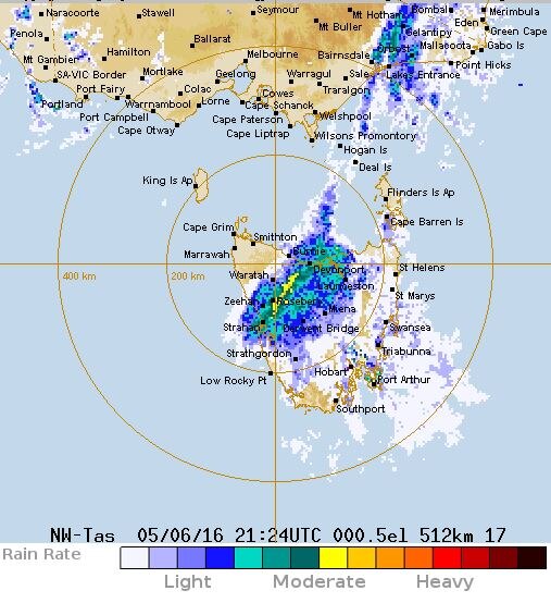 . The radar coverage is 360 degrees and encompasses much of Bass Strait Tasmanias northwest central north and to a lesser extent the northeast and the west coast as far south as Strahan. Marine Wind Warning Summary for Tasmania Severe Weather Warning for Furneaux Islands North East Central North and parts of East Coast North West Coast Central Plateau and Midlands Forecast Districts. It should provide useful weather information as far north as Port Macquarie west to Wollemi National Park and South to Campbelltown.